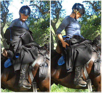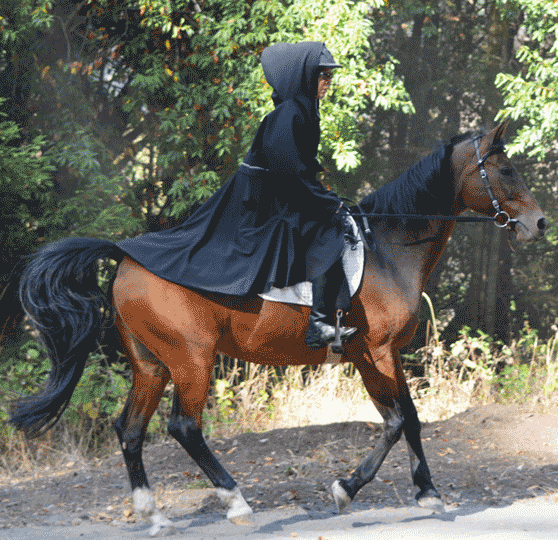 'H02 HAARLEM'- Breathable Equestrian Raincoats BHS Retail Exclusive! These coats are individually handmade in the USA with great care to detail by their designer. The H02 Haarlem coat is made with the highest quality materials, with functionality and comfort in mind! Elegant enough to wear into town, durable enough for hard riding and ranch work. The H02 Haarlem is constructed of the latest high tech fabric. FEATURES: of the H02 Haarlem coat: 3 layers of soft flexible fabric ( as used for high end sking and snowboarding softshell coats) two of breathable waterproof material with an inner layer of fleece, the fabric is anti-static, flame retardant, and heat insulation. The coats are shrink resistant, tear-resistant, waterproof, windproof, and breathable. Coats are not bulky and feature reflective striping edge detail on front and back for visibility, a large front pocket for wallet cell phone, etc. and thumb loops to keep your hand covered. The coat has small rivet loops along the hem where it can be attached via ties, to fully cover any saddle. Coats are unisex and are oversized like a poncho, so other garments, even a coat or swaeter easily fits underneath. if Riding on a hot day the coat can be unzipped and you can fit your torso through tieing the arms around your waist. CARE: The coat can be washed in a washing machine on a gentle cycle with cold water. Hang the coat to dry. Alternatively, the coat can be tumble dried in the drier, for approximately 20 minutes on a low warm temperature. This will reactivate the durable waterproof feature of the fabric. SIZES UNISEX: Medium ( fits most) or Large ( fits an XL to 2X + women and a L to XXL mens) Coats are unisex and are meant to be oversize like a poncho, so other garments, even a coat or swaeter easily fits underneath. COATS ARE NO LONGER BEING MADE, LAST CHANCE! H02 Haarlem-coat Size Medium $295 H02 Haarlem-coat Size Large $295 ![]() ![]() |